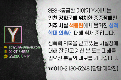 SBS <궁금한 이야기 Y>에서는인천 강화군에 위치한 중증장애인 거주 시설 색동원에서 불거진 성적 학대 의혹에 대해 취재 중입니다.
