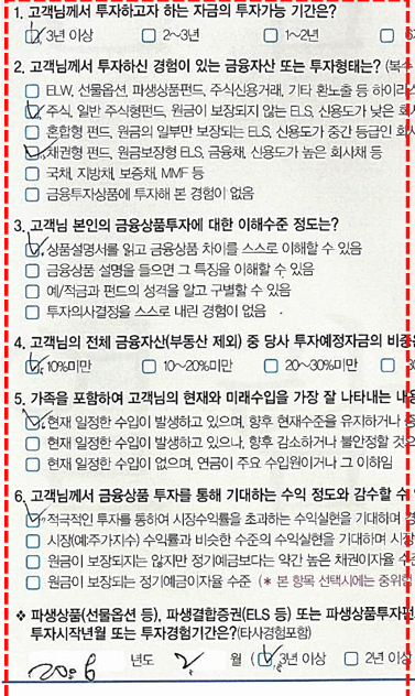 당시 위조해서 법원에 제출한 위조한 투자자정보확인서를 보면 정말 놀랄정도다. 사진1 좌측의 위조한 2008년숫자와 우측의 원고가 기재한 숫자와는 필체가 전혀다르다. 사진3 하단을 보면 2008년 2월의 숫자는 최효선(증권 관리팀.최사)직원이 위조한 것으로 2010년6월부터 투자를 시작했는데 2008년 2월부터 시작했다고 위조하고 투자경험도 없는데 3년 이상이라고 √해서 법원에 증거로 제출했는데 참 겁없는 간 큰직원이다. 이 사건은 범죄행위를 하고 삼성을 말아먹을려고 작정을 한것이며,삼성증권에서 있을수 없는 천인공노할 중대한 범죄행위 이다. 이 글을 올리는 이유는 위조한 부분에 대해서는 삭제가 되어야 하고 위조한 직원은 피해 고객에게 정중히 사과하고 삼성증권은 배상을 하라는 뜻이지 다른 이유는 전혀 없다.