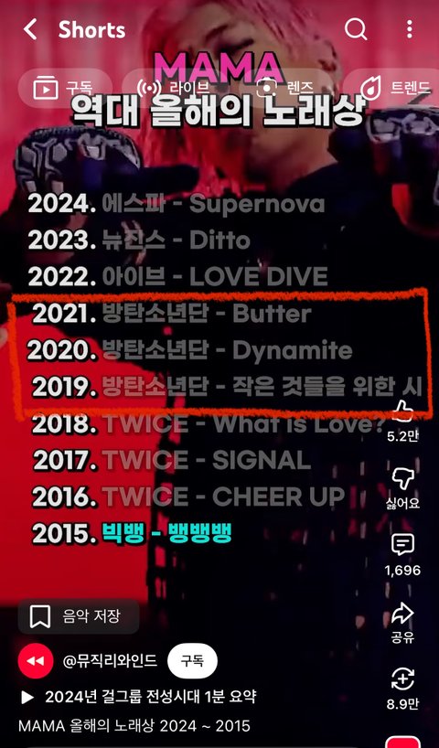 정작 시상식에서 올해의 노래상 방탄이 3년 연속 받을 동안 엑소는 무…
