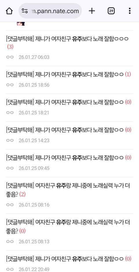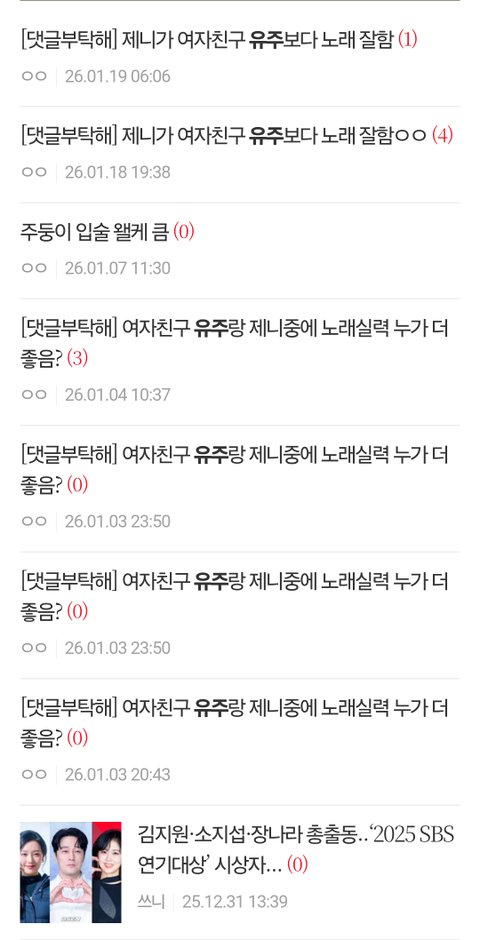 여자친구 유주 팬 인데 이놈 계속 제니 로 도배하고 갈라치기 하는데 조카 별거 아닌거같지만 이자식때문에 제니 안티 될 지경 난 여태 제니 나쁘지 않게 봤음 ㅋㅋ내가 제니 안티된 이유는 저놈때문임
