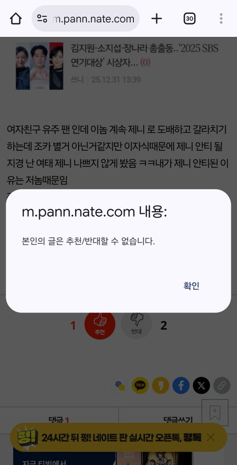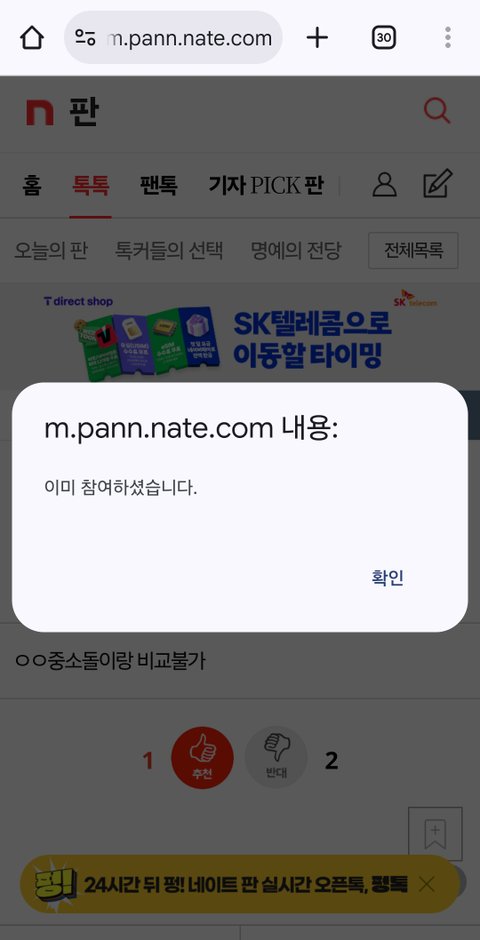 혹시나 하지만 본인글은 본인 추천 반대 할수 없어...