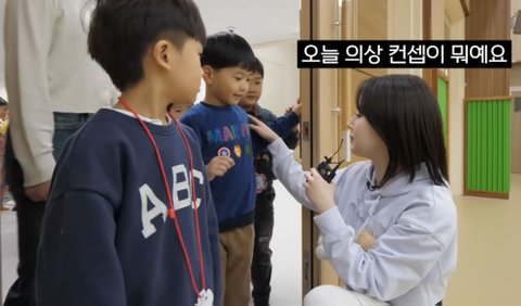 일단 수업시작에 앞서 애기들 직접 맞이하러 가는 오해원
