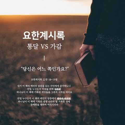 그러므로 지금은 계시록의 본래 뜻을 온전히 깨닫고 실천하며 살아가야 할 때입니다.