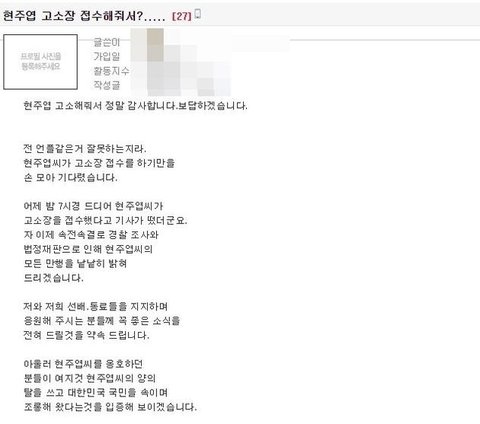 현주엽이 명예훼손으로 고소했지만, 무죄로잘빠져나갔음