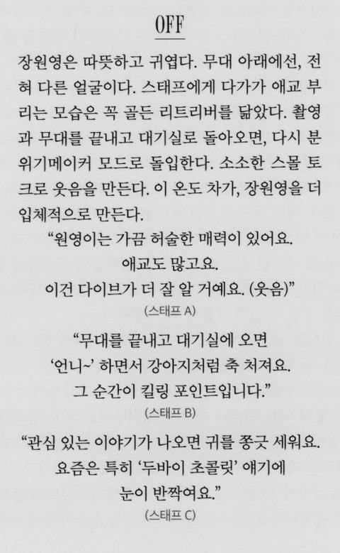 + 장원영은 브랜드가 먼저 찾는 얼굴이다. 사실, 모델보다는 파트너에 가깝다. 콘셉트를 정확히 이해하고, 브랜드가 전하고 싶은 메시지를 스 스로 확장해낸다. 요청하지 않아도 직접 움직 인다. 촬영 이후의 홍보로 소비자와의 접점까지 자연스럽게 연결한다. 광고주 입장에선, '럭키 비키'다.