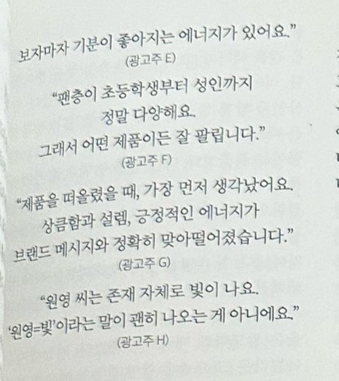 "브랜드 니즈를 정확히 캐치해요. 요청하지 않아도 직접 SNS로 홍보해주는 모습에 감동했어요. 정말 '알잘딱깔센'이에요." (광고주G)