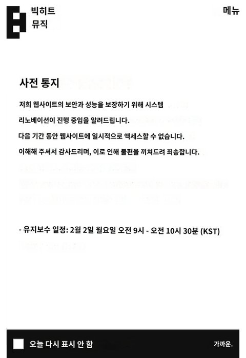 월욜에 빅힛 홈페이지 점검한다는데 뭐 뜨나봄 하긴 컴백 이제 7주 남았는데 뭐라도 줄 때 되긴 했다