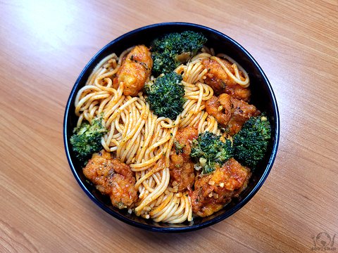 미트볼 대신 치킨볼!이라는 느낌으로 스파게티에 닭강정 섞어서 먹어봅니다.