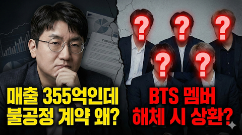 충격적인 건 바로 이 조항입니다. 'BTS 멤버 탈퇴나 해체 시 즉시 돈을 갚아라.' 기존 계약에는 없던 내용입니다. 과연 7명의 멤버들은 자신들의 거취가 회사의 빚 독촉 사유가 된다는 걸 알고 동의했을까요?"