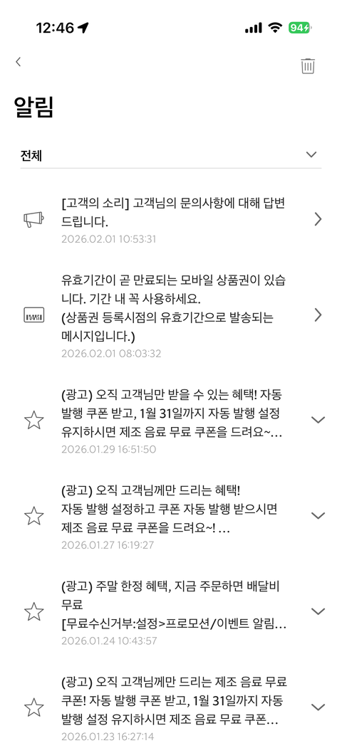 아침에 눈뜨니 스타벅스 앱에서 알람이 왔습니다
