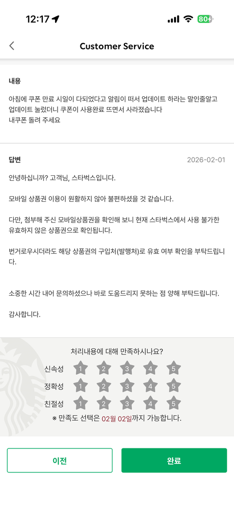 스타벅스 쿠폰 사용기한이 임박했으니 확인하라구요..