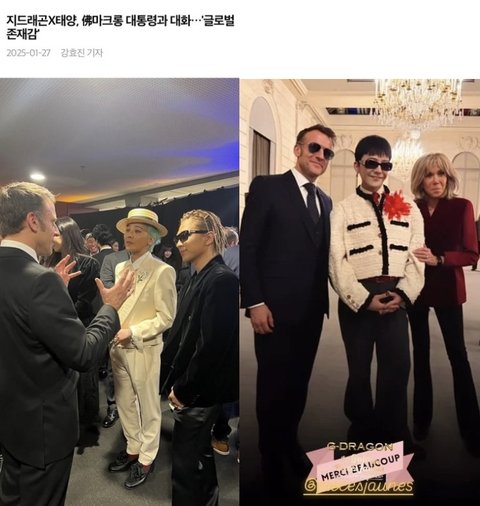 지디 프랑스 대통령 내외랑 쓰리샷 ㄷㅂ
