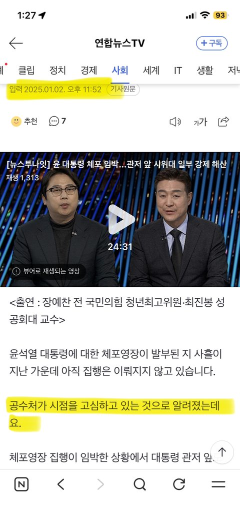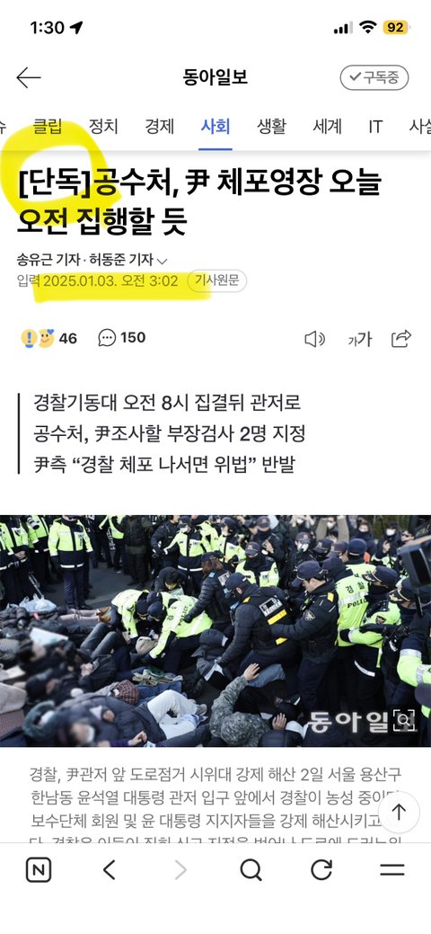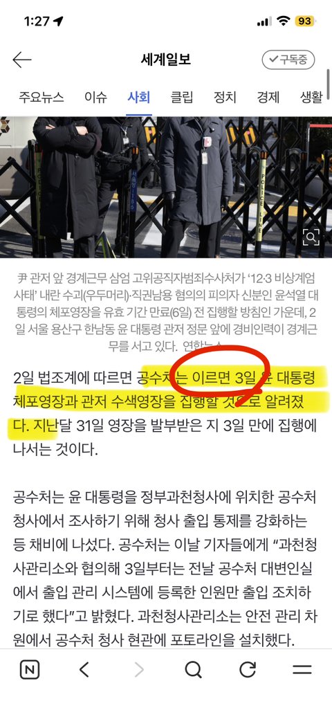 넌 2일 저녁에 공수처 체포를 미리 알았구나~~~ 뉴스를 봤구나~~~~~~^^