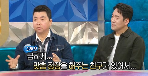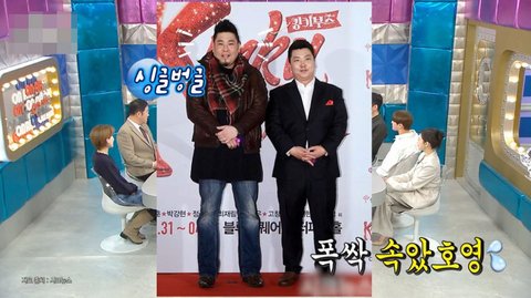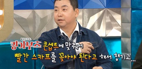 정호영 혼자 풀 정장에 뮤지컬 컨셉 맞게 빨간 포인트 준 상태에 뻘쭘했다고.. ㅎㅎ