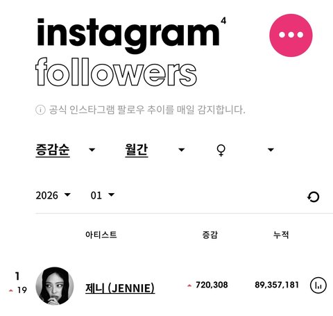 1월 k팝 개인 인스타 팔로워 증가 1위
