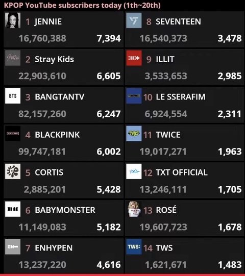 1월 k팝 개인 유튜브 구독자 증가 1위