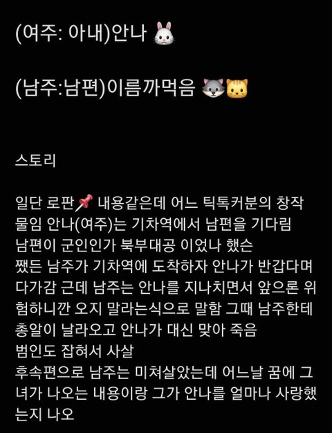 어떤 틱톡유저가 본인이 내용을 창작밑 그림도 직접 종이에 그려서 스토리를 짜가지고 올린영상이었는데