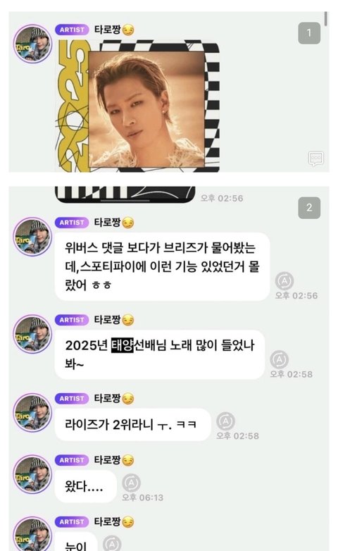 마~니 친한가보네 지젤 인스타에 항상 팝송만 올렸는데 갑자기 태양 노래 올려서 보니까 쇼타로 최애아이돌이네 최근까지도 라이즈 노래보다 더 많이 들었다고 했네