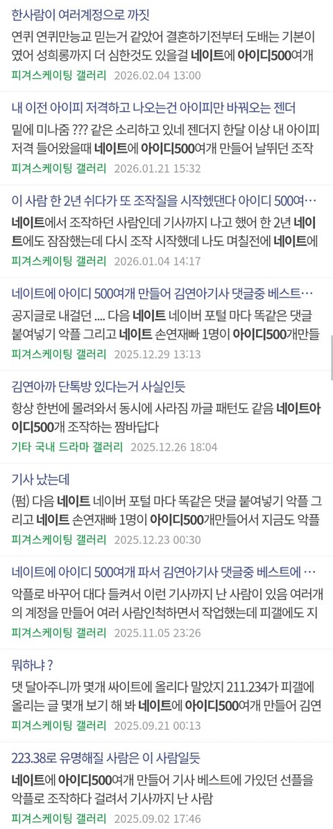 누군가 정리한 '아이디 리스트'나 'IP 추적글'이
