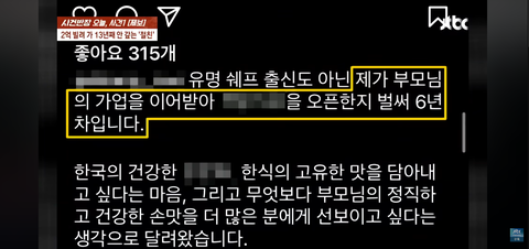 또, 친구의 며느리는 인스타그램에 제 친구를 'oo 식당 고문님이자, oo 식당 모든 o를 만드신 o여사님',