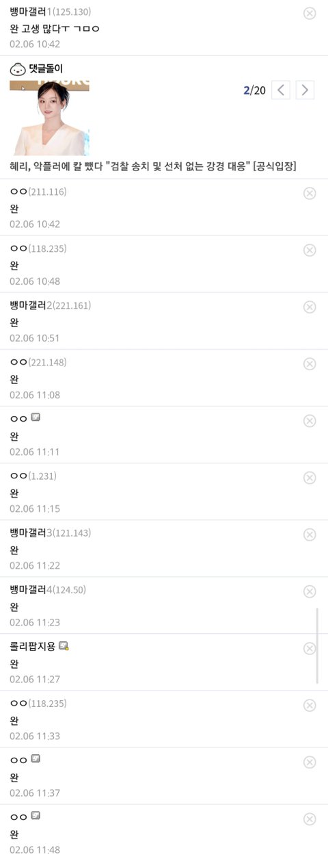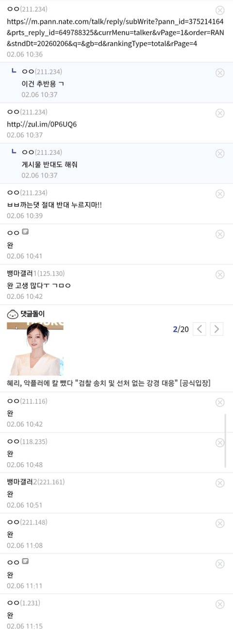베댓 순식간에 바뀌는것도 봤음 저기 단톡방도 있어 짹에서 까는것도 서로 뭐라고 쓸지 논의 하더라 하는짓 그대로 다 업보로 돌려받기를 바람 예전처럼