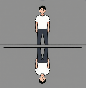 주황색 사람은 외부에서 중력이 작동해 빨간색 선에 닿아있고