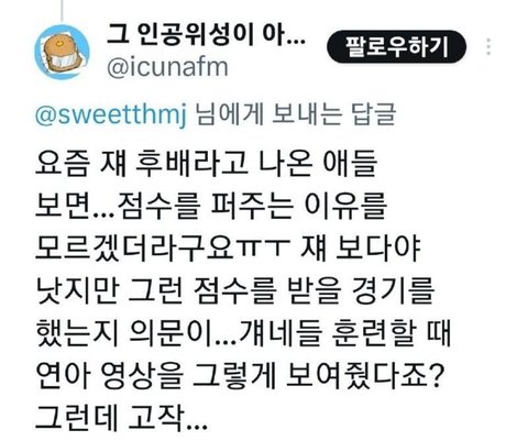 다른 선수나 그 기사들에 대해 악플을 달고