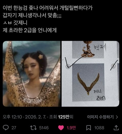 제니 zen 뿐만 아니라 서울시티 멜뮤 의상도 그렇고 평소 콘서트 의상에도 한국 문화 엄청 세심하게 넣음 본인 영향력을 진짜 좋은 데에 쓰는듯