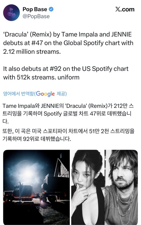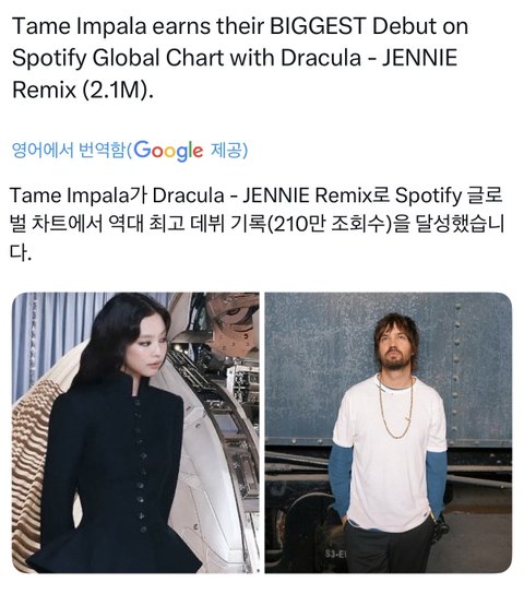 테임 임팔라 역대 글포티 최고 데뷔 기록이래 ㄷㄷ