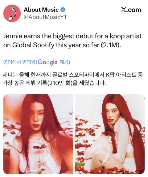 '리믹스로' 올해 k팝 가수 스포티 최고 데뷔에