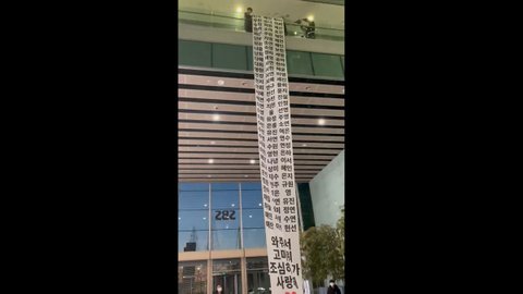 팬싸 참여해준 사람들 이름 다 적힌 현수막 펼쳐서 보여주고