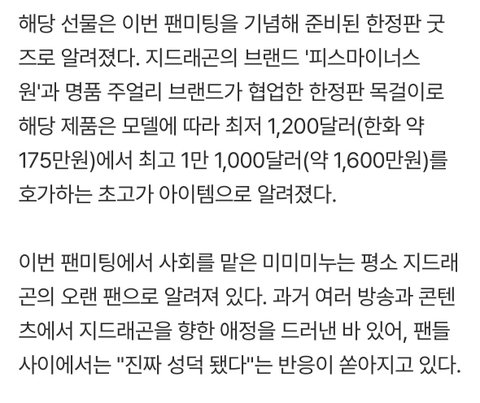 미미미누 어디까지 가는거냐….성덕 오브 성덕이구만 지디한테 다이아 선물 받는 인생 조카 부럽