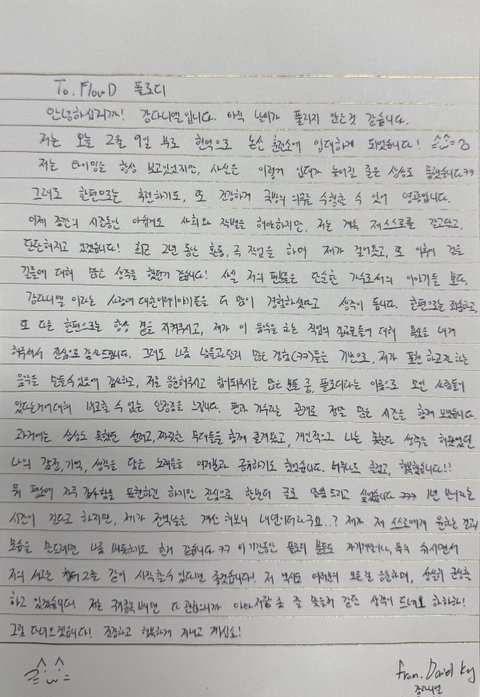 거기에 팬들 보라고 손편지까지 ㅠㅠ