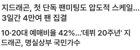 지디 역조공으로 화제되고 팬미팅에서 한 소소한 말들은 9시뉴스에서 토론하고 니가뭔데 소년이여 챌린지 다 말아주는데 8.8만 혜자 팬미 심지어 솔로최다 관객 4만명 수용ㅋ화제성고트ㅋㅋ정병들 미칠만한거는 이해함