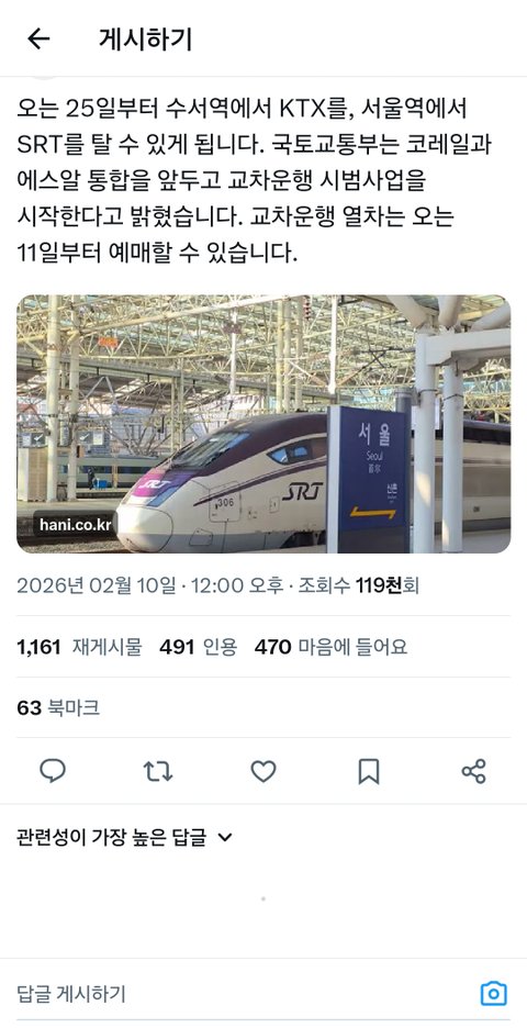 KTX SRT 통합하면 가격 낮춘다면서 가격은 언제 인하하노