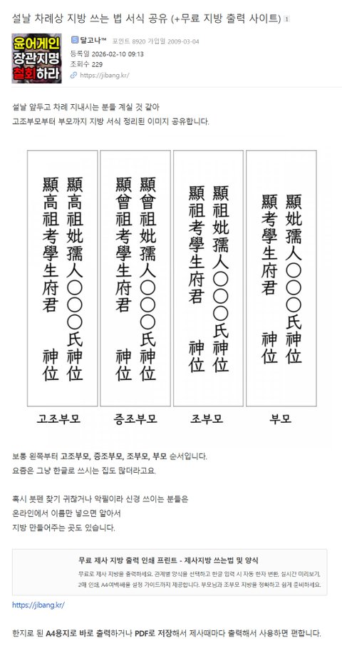 설날 차례상 지방 쓰는 법 서식 공유