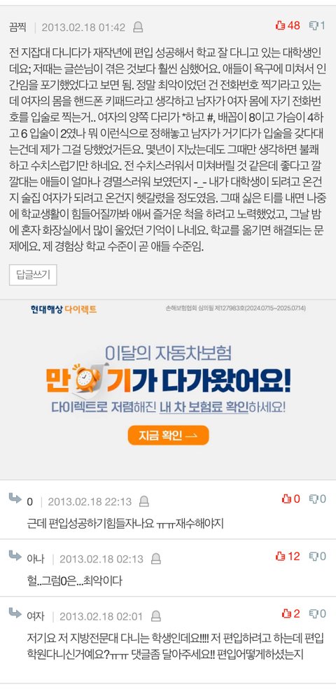 ㅁㅊ 진짜 지금도 여성인권 개같이 낮다고 생각하는데 저때는 여자는 사람으로 안봤구나 진짜 우리나라에 페미니즘이 유행안할수가 없었던것같음... 한남은 지금도 별로지만 그때는 진짜 쓰레기였네