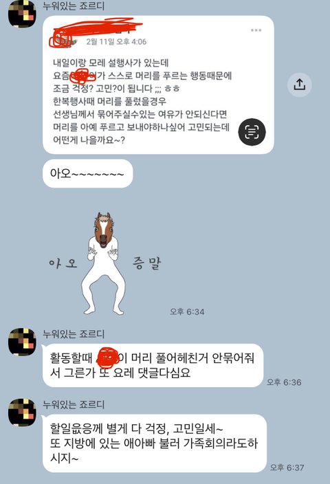 활동할때 @@이 머리 풀어헤친거 안묶어줘서 그른가 또 요레 댓글다심요