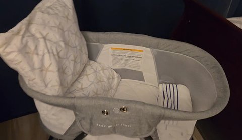 본인 숙면에 아기소리가 방해됐는지 아기침대를 본인 옆이 아닌 발 쪽으로 밀어두고,