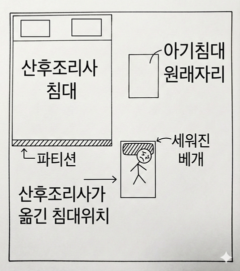 관리사님에게 2일차 신생아 맡기고 3일차 아침에 일어나 아기방 와봤는데…