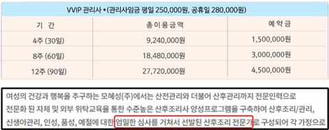 28일에 924만원인 VVIP등급, “심사를 거쳐 선발된 산후조리 전문가”를 파견하기로 하였지만, 파견된 산후관리사는 거의 모든 면에서 하자가 있는 초보자였습니다.