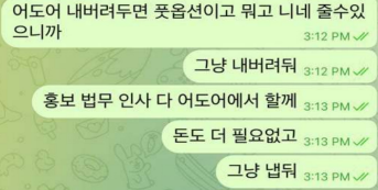 애초에 첨부터 풋옵션 1천억 주기 싫어서 하이브가 온몸비틀기한거지 민희진은 꾸준히 돈보다 명예라고 외치면서 어도어 나간거였고 근데 능지 박살난 남초는 아직도 민희진이 1천억 받을거 750억 멍청하게 손해본거니 민희진이 진거라고 정신승리하려고 발버둥 치더라ㅋㅋ