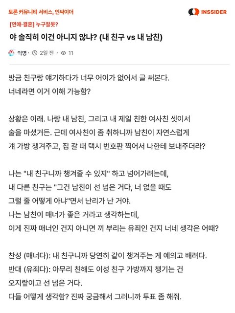 친구한테 너무 친절한 남친