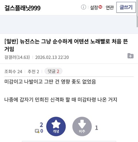 걸플갤 뉴진스 데뷔는 노래빨이라고 까네
