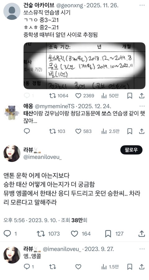 쏘스출신 김건우 승한 한태산 친목 정리.txt