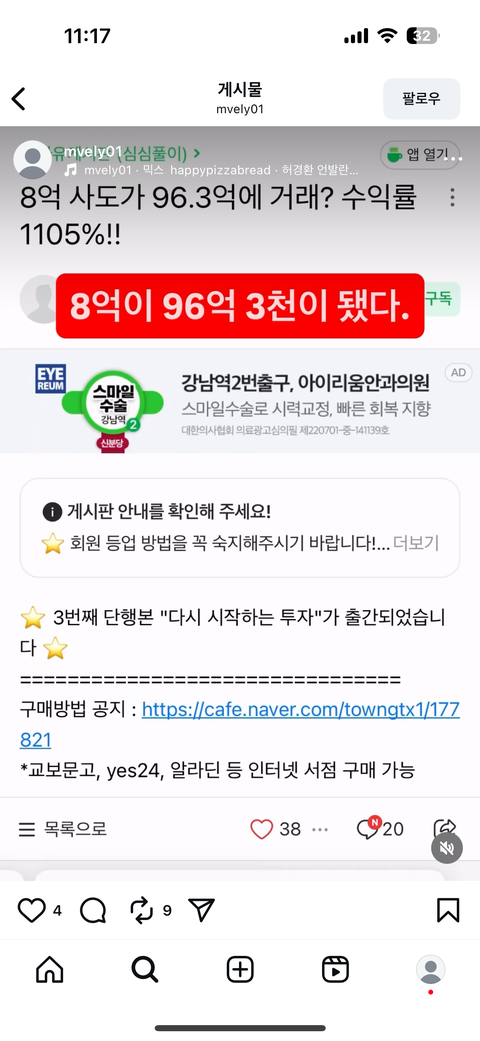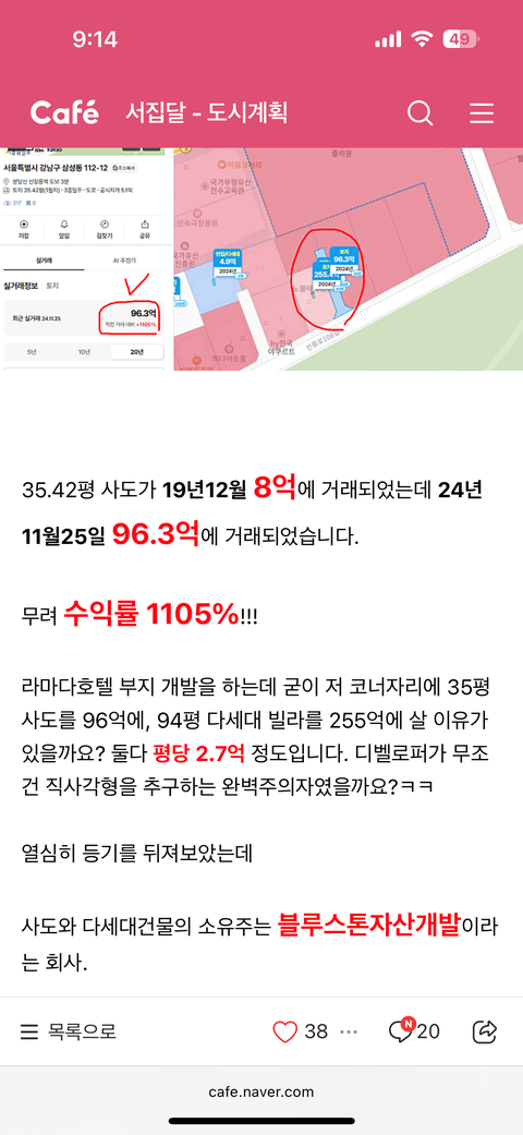 8억에 산게 96억 3천 됌(수정 추가)