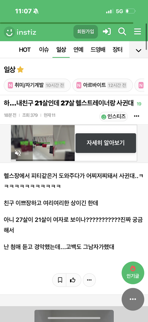 21살이면 40대도 여자로 보이는데 27살 갖고..