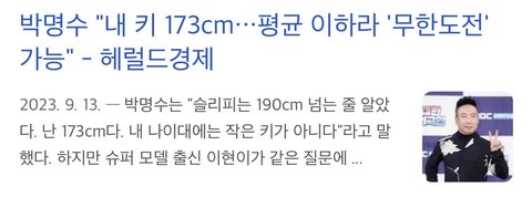 아래에 박명수 171이라는 댓글도 그렇고 원글에 변의주가 키 속였을 거란 댓글들도 그렇고 얘네는 남의 키를 안 후려치면 언니들 쉴드를 못 침ㅋㅋ