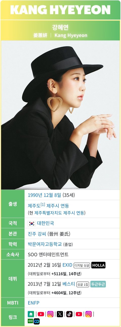 (사진1 설명) 강혜연(姜蕙妍, Kang Hyeyeon) 대한민국의 가수, 걸그룹 EXID의 초기 멤버 <출처: NAVER 나무위키>