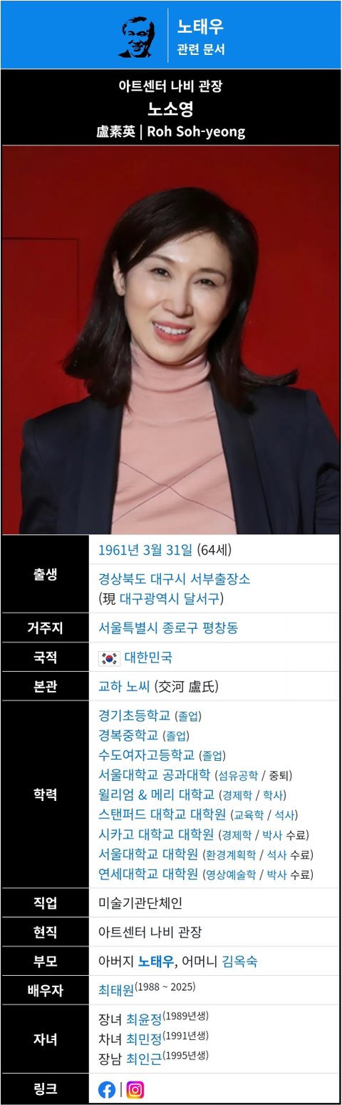 (사진6 설명) 노소영(盧素英, Roh Soh-yeong) 아트센터 나비 관장 <출처: NAVER 나무위키>